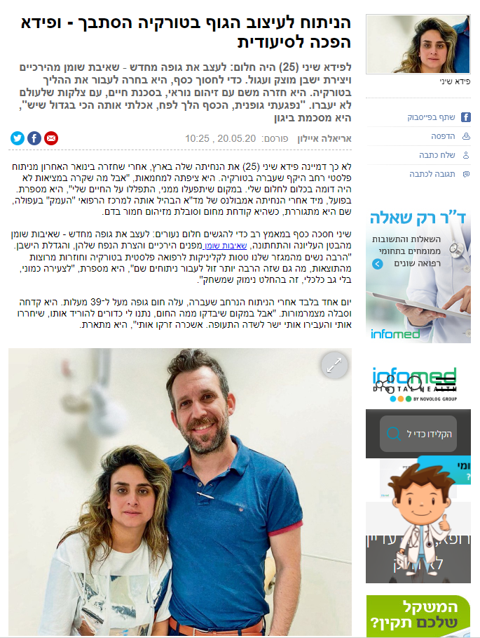 בנוסף תקבלי הסבר מפורט על תוצאות הניתוח הצפויות וכיצד הן יכולות להיות מושפעות מגורמים שונים, כגון הריון והנקה. לאחר שיהיה בידייך את המידע המלא, נוכל להתחיל לצעוד יחד לעבר הגשמת החלום שלך.